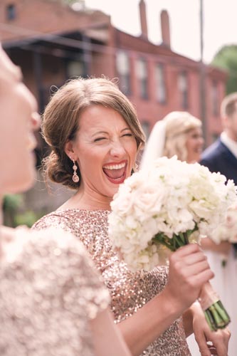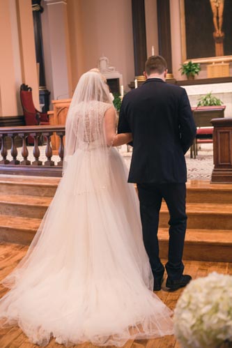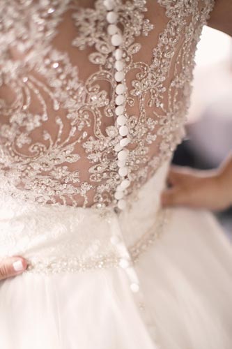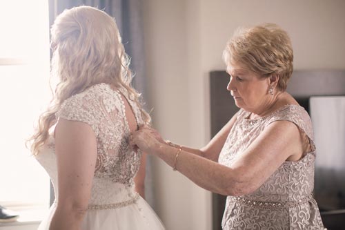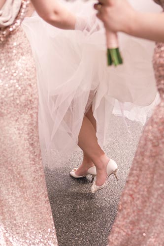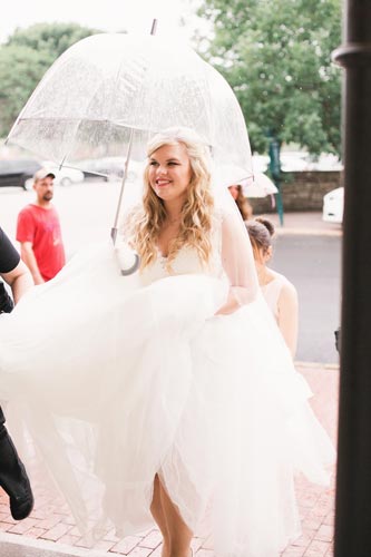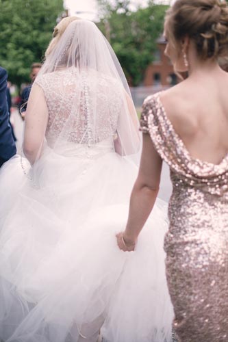 Right before leaving for the church, one of the bridesmaid’s zipper broke. Our esteemed assistant Lauren ran up to their room and hand sewed her in while calming her nerves. That bridesmaid later became one of our future brides when it was her turn to get married! No broken zippers that day. Phew!